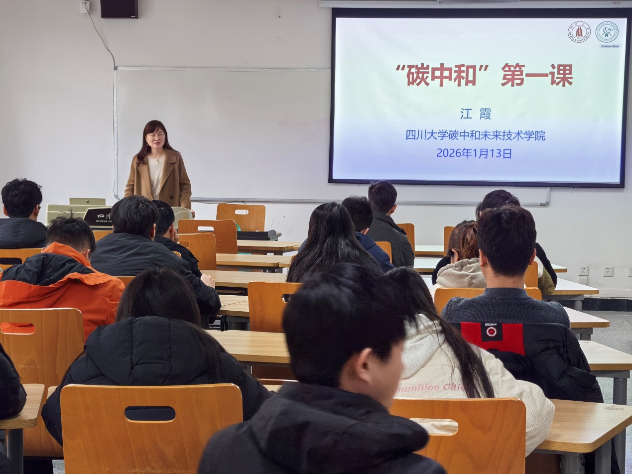 2026年1月13日,公司党总支书记、常务副经理江霞教授在江安校区文科楼三区401教室为2025级研究生讲授了“碳中和”第一课。本次课程围绕碳中和国家战略、公司建设与发展、人才培养与科研创新展开,旨在引导新生深刻理解碳中和事业的重要意义,明确学习科研方向,凝聚未来行动共识。