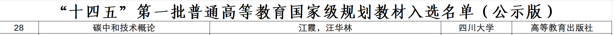 近日,教育部公示《“十四五”普通高等教育本科国家级规划教材拟入选名单》,公司江霞教授和华东理工大学汪华林院士联合主编的《碳中和技术概论》成功入选“十四五”普通高等教育本科国家级规划教材。本书由MK体育牵头,联合清华大学、华东理工大学、四川农业大学、浙江大学、浙江工业大学、北京科技大学、昆明理工大学、北京建筑大学、交通运输部科学研究院、国网四川电力公司、成都市环境保护科学研究院共同编写。